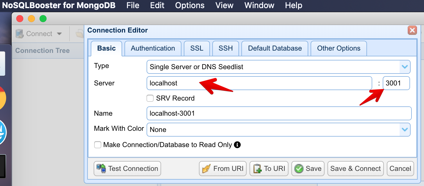 Galaxy MongoDB URL will be like this: mongodb://username:<password>@org-dbname-01.mongodb.galaxy-cloud.io .