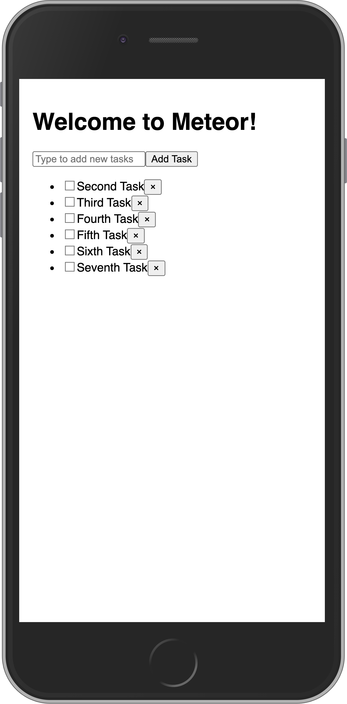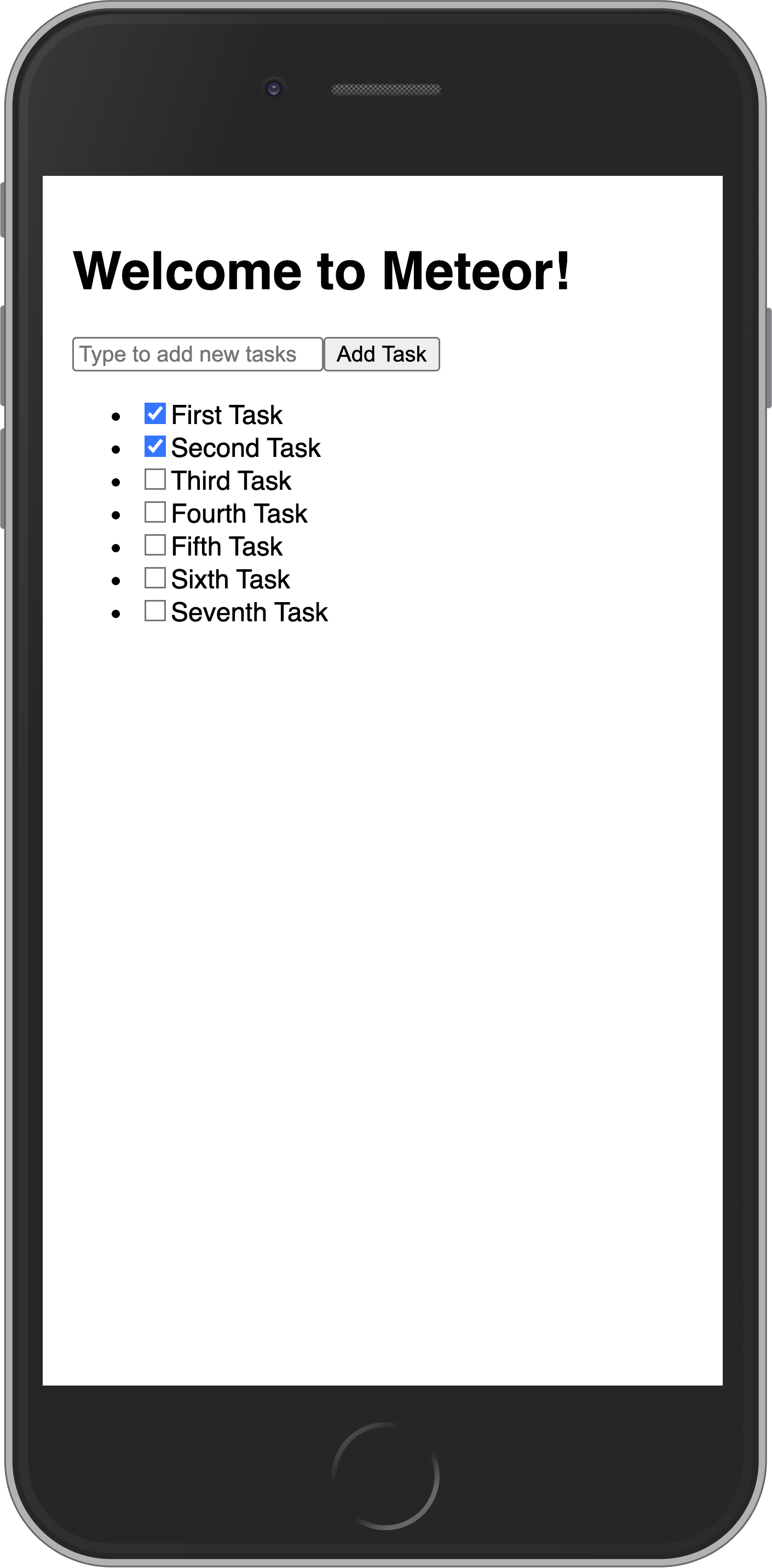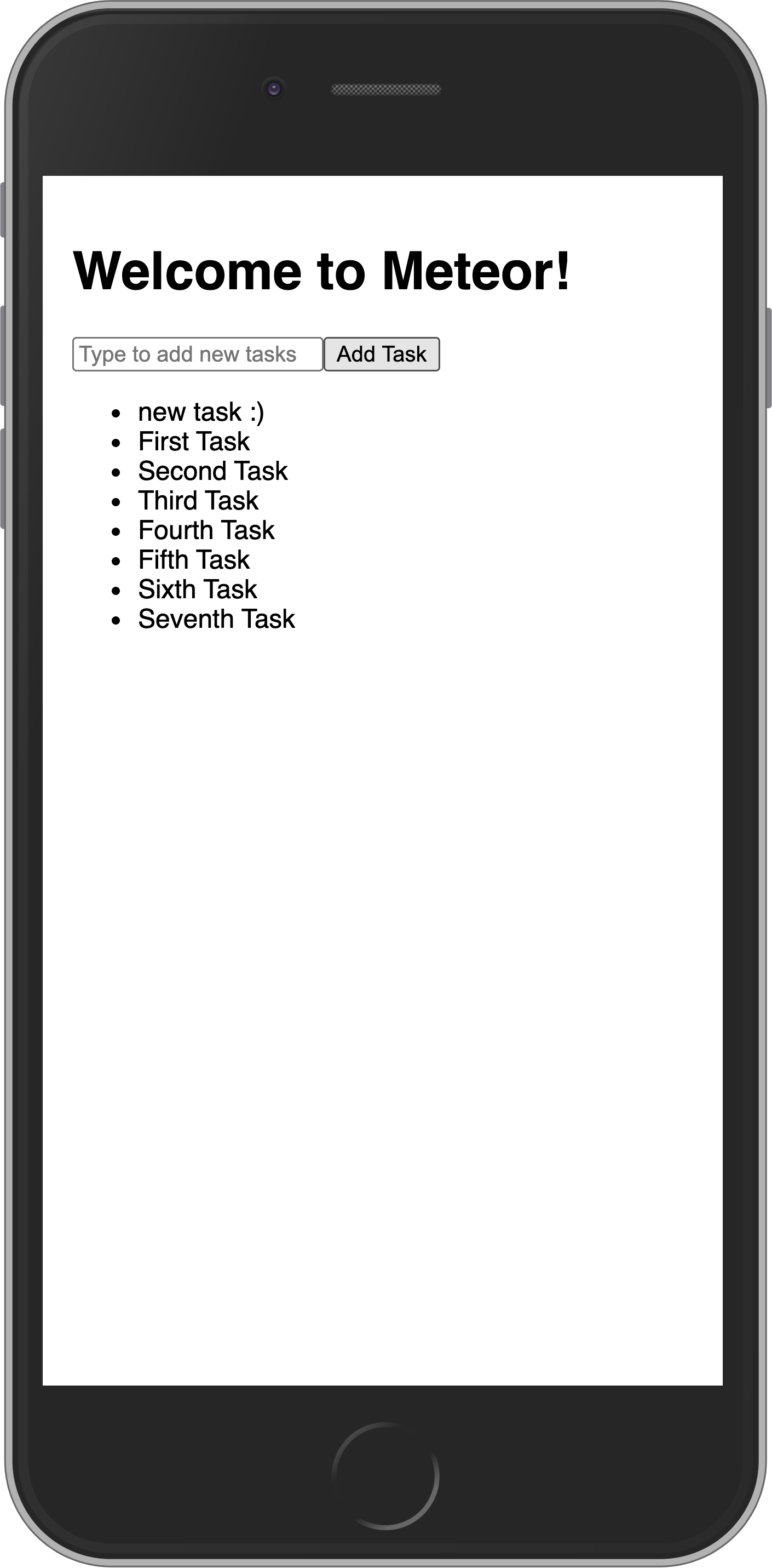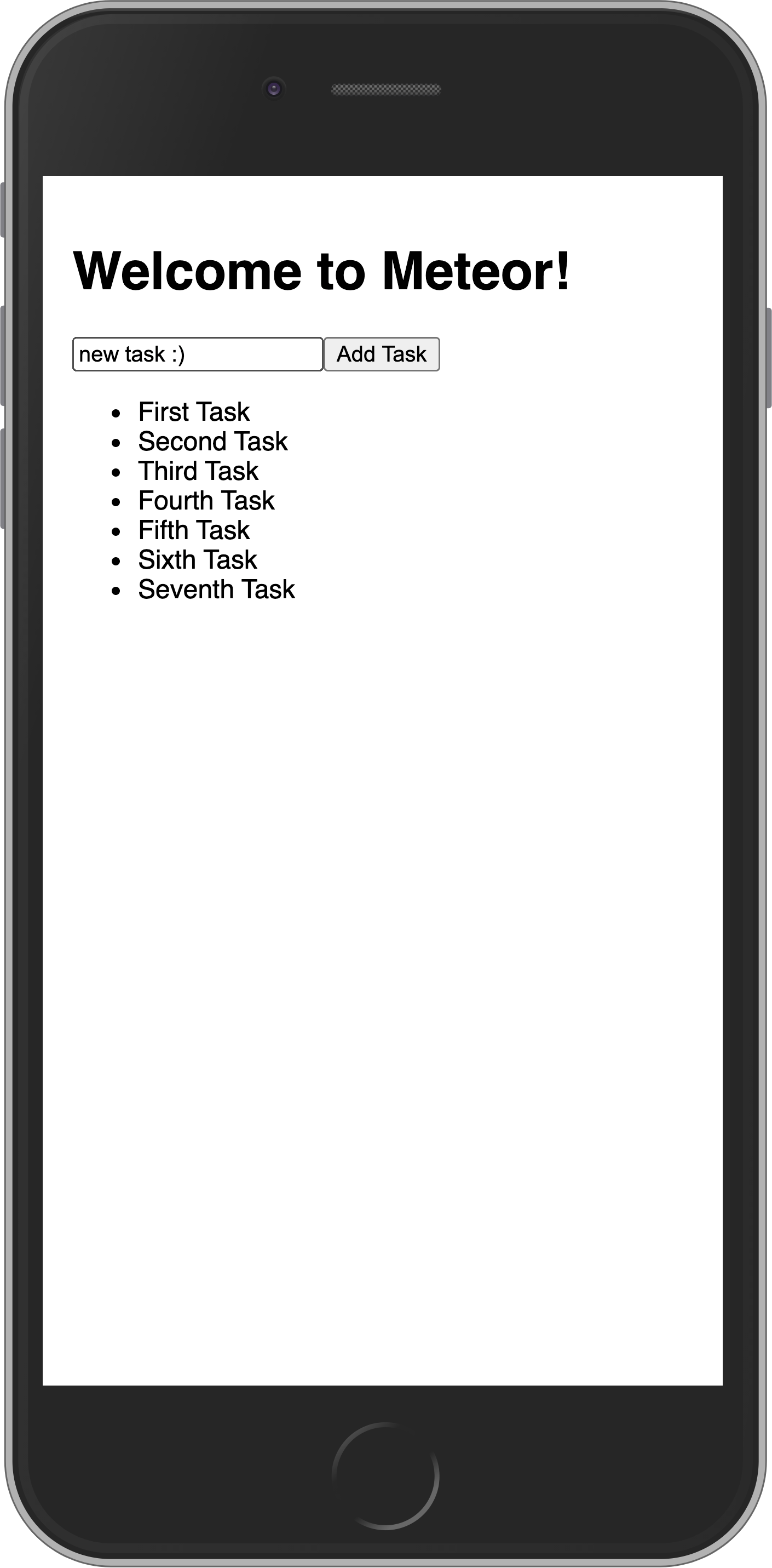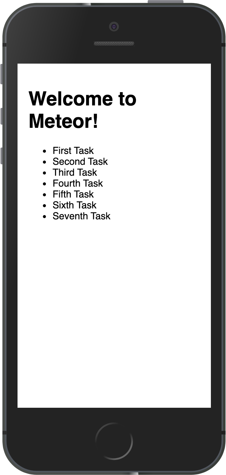 As you can see, everything is small, as we are not adjusting the view port for mobile devices. You can fix this and other similar issues by adding these lines to your client/main.html file, inside the head tag, after the title.