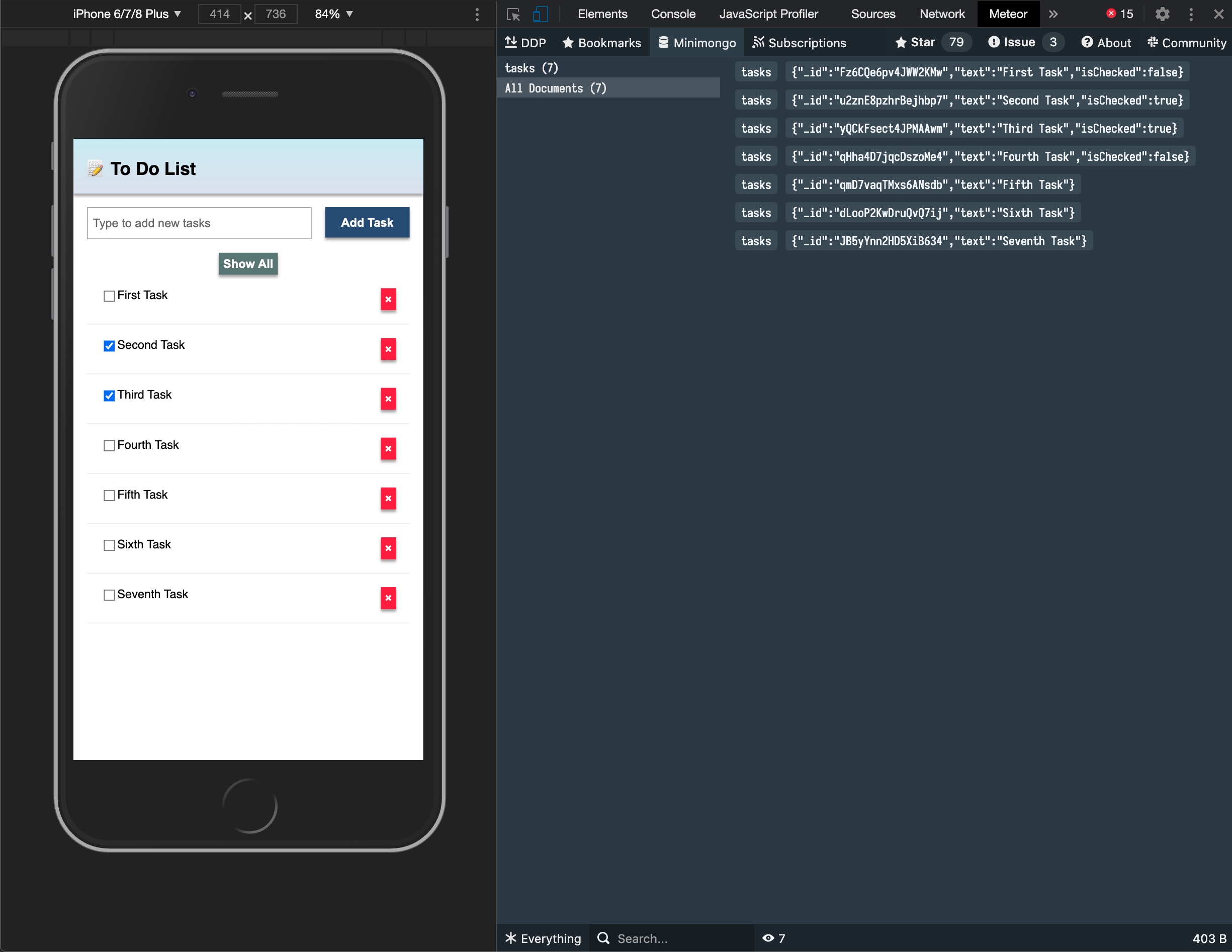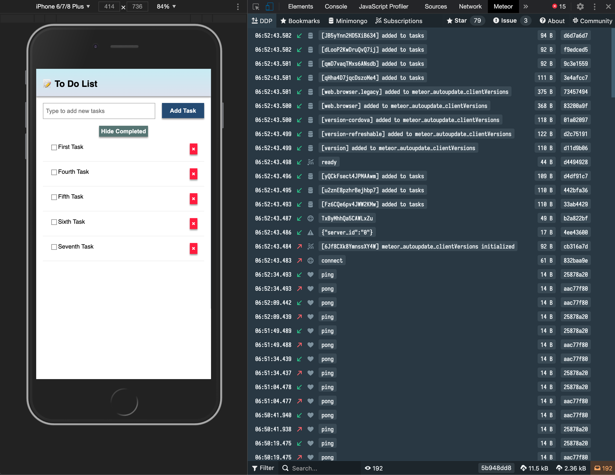 meteorDon't worry, Meteor will keep your app in sync with all your changes from now on.