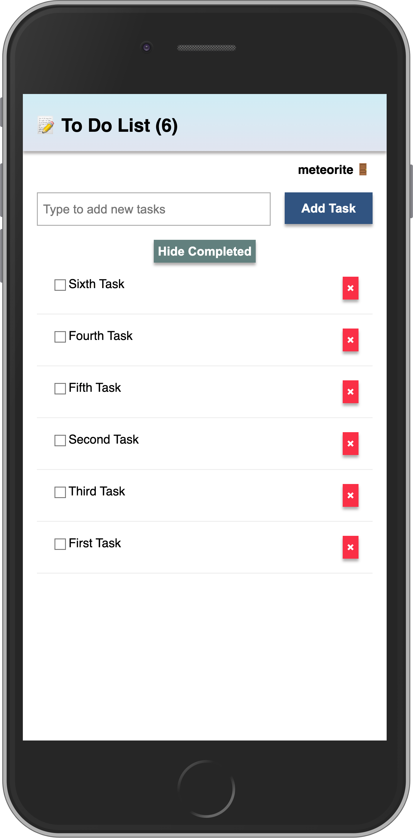 });Inside the imports/ui folder let us modify App.svelte to display a header and a list of tasks: